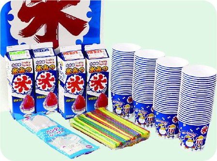 文化祭・イベントで販売らくらくかき氷イベントセット!お祭りの屋台やイベントの出店などで定番の「かき氷」の氷みつ・シロップは、豊富な種類とおいしさで圧倒的な存在感! |